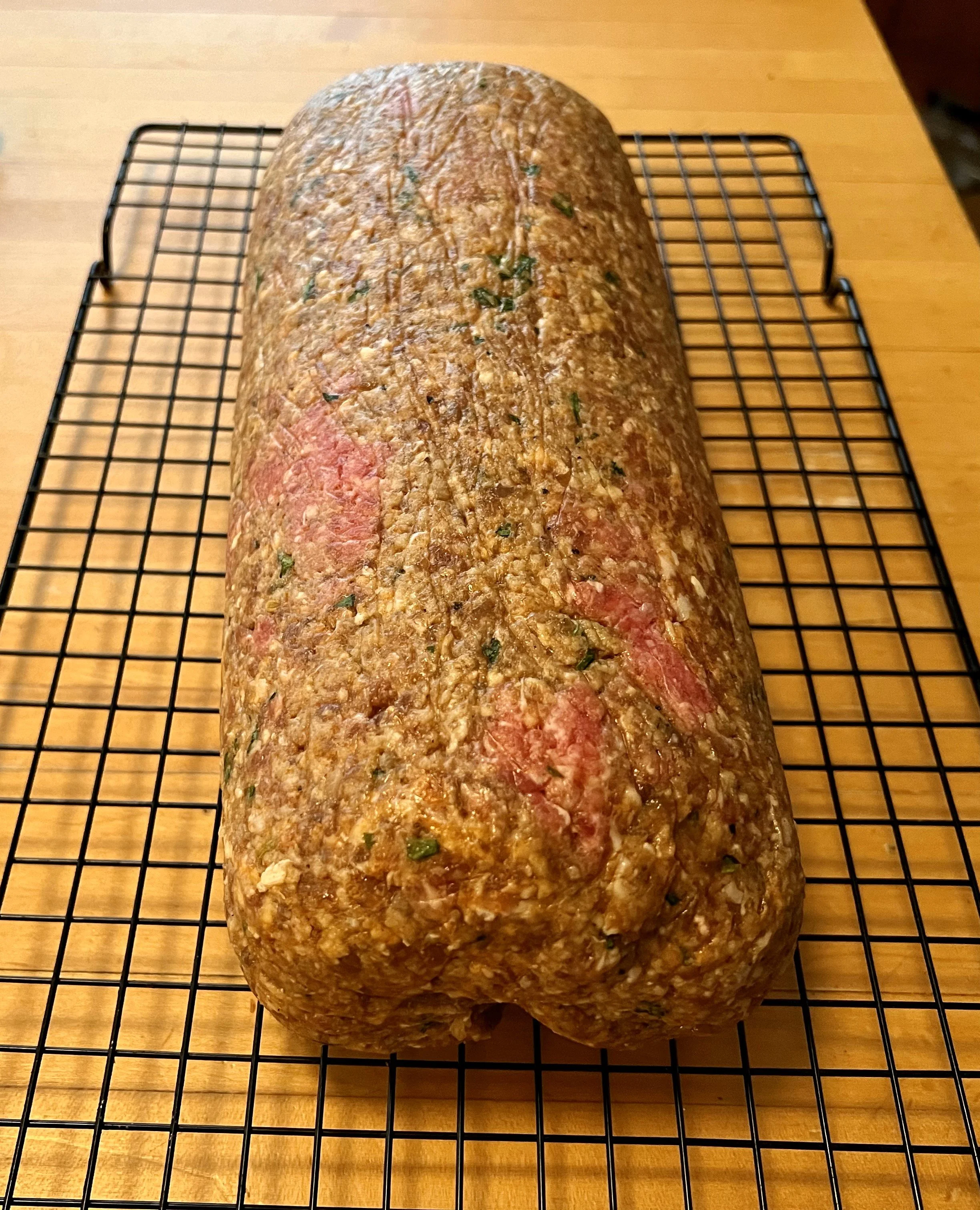 Once the meatloaf reaches the desired temperature, remove it from the smoker and allow it to rest for 20 minutes on the wire rack over a pan. The meatloaf will continue to release pan drippings.