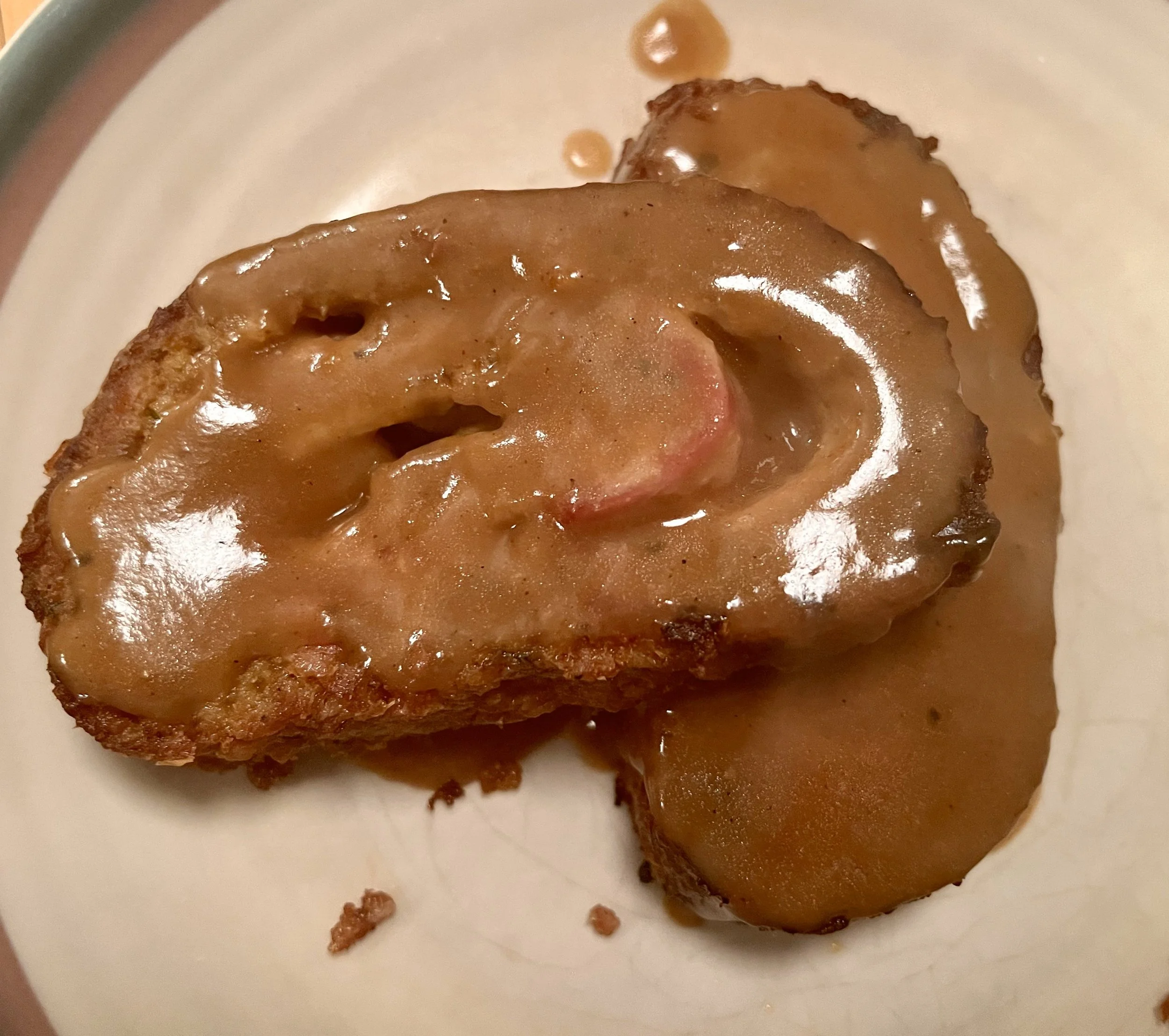 Serve the meatloaf smothered with BBQ Gravy and enjoy!